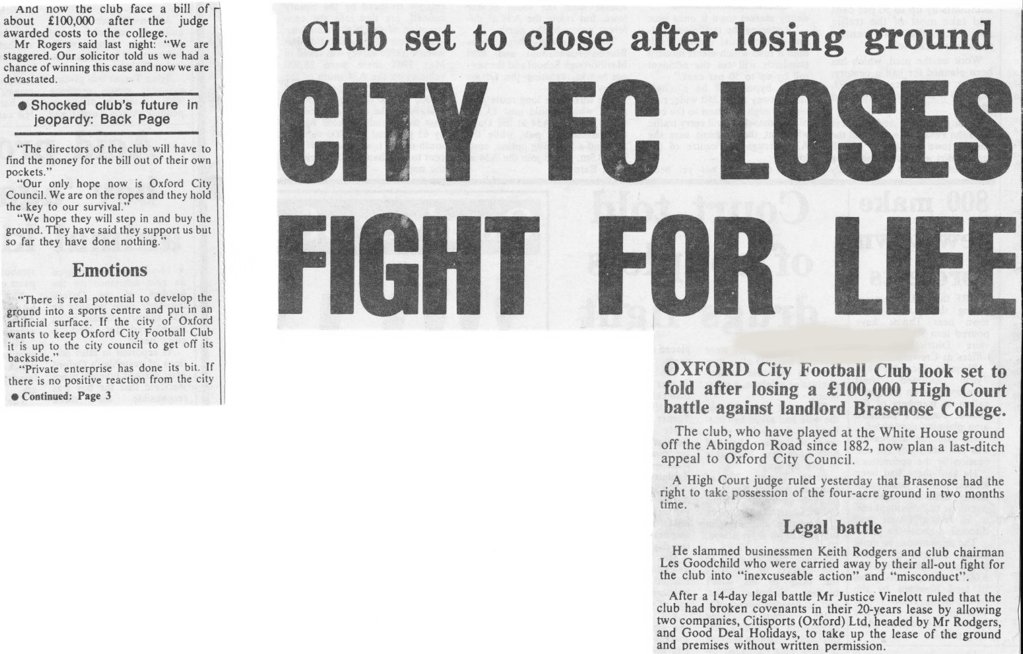 These moves post the Rosser Group receivership by mainly Rodgers and others were very much against the interests of Oxford City FC and solely for their